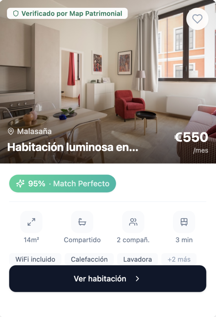 Cada habitación muestra tu nivel de compatibilidad. Elige con confianza.